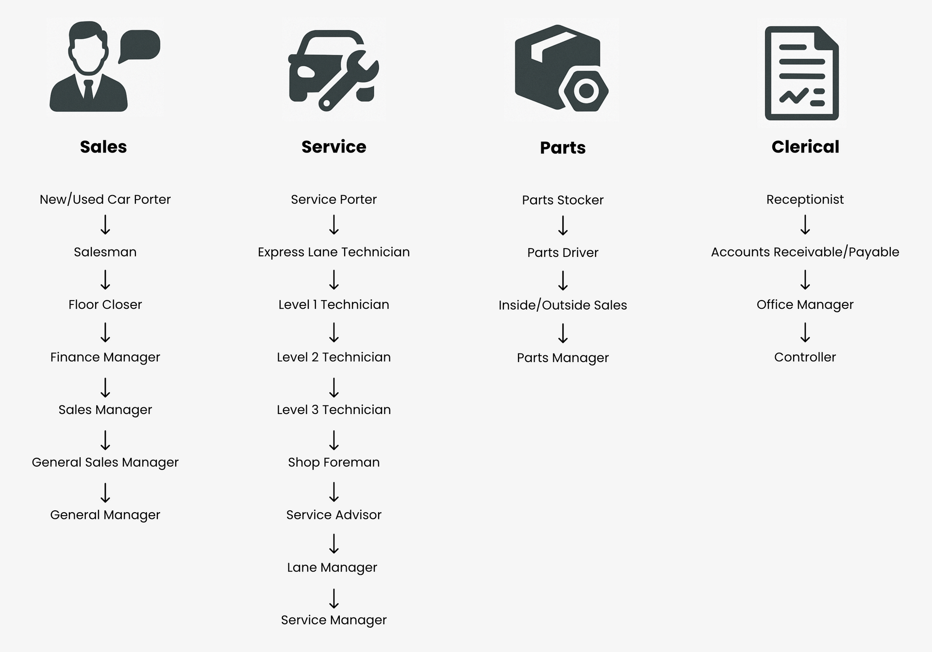 While career paths can vary, here are some example career paths with Napleton Automotive Group.