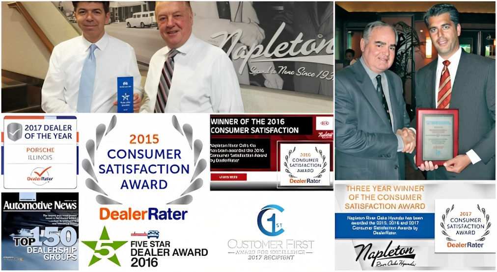 Mr. Ed Napleton has received numerous awards in his automotive career from a variety of manufacturers. These awards include but are not limited to several Chrysler Five-Star Awards, Acura's Precision Team Dealer of Excellence, Hyundai's Board of Excellence and Porsche Premier Dealer. Automotive News ranked Napleton Automotive Group 17 out of 150 best dealerships for new car sales in 2019. Napleton Automotive Group was ranked the Number 1 automotive group in Illinois! In addition, we were also recognized by Pied Pier as the number one group for online responses!